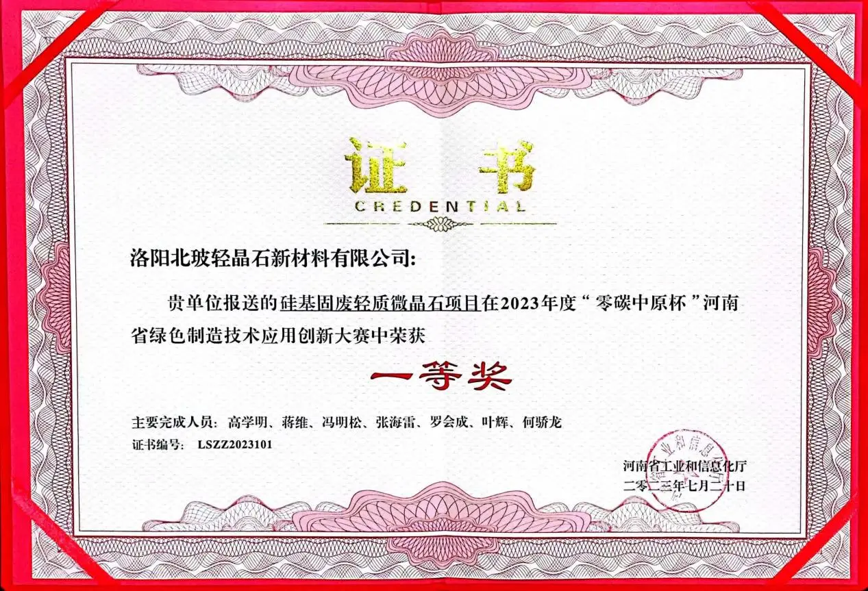 新材料零碳中原杯,企业研发中心,技术、新材料创新型中小企业,新材料-大宗固废综合利用骨干企业,中建陶