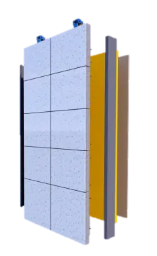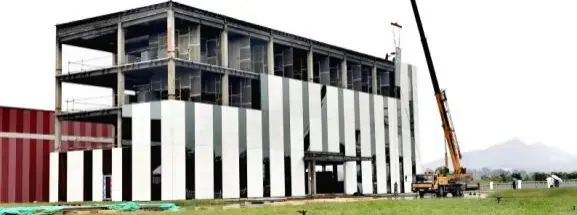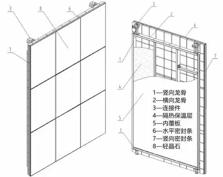 轻晶石单元墙体通过用龙骨、镶嵌钢筋、金属封边、挂装节点、模块化拼缝等结构制造方法,把轻晶石做成安全合理的高精度标准化结构件。