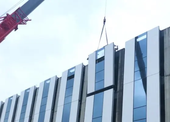 工厂流水线自动化制造,现场直接吊装,安装和密封都无需在墙外进行,任何一块都可以独立更换。